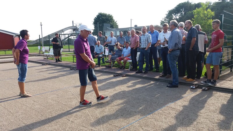 Bei herrlichem Sommerwetter trafen sich Mitglieder des Bürgervereins, um ein paar Runden zu boulen. Auf der Anlage des Fördervereins Freibad Ulitzhörn (FFU) begrüßte die 1. Vorsitzende des Fördervereins, Annette Mehlig, die Teilnehmer, Helfer und Gäste. Auf 6 Bahnen verteilten sich 24 Spieler, um das Schweinchen - die kleine hölzerne Kugel - zu treffen. Mitglieder der Boulesparte standen auf jeder Bahn mit Rat und Tat zur Verfügung. Die leichten Spielregeln waren auch von den Neulingen schnell begriffen, und so mancher Anfänger wunderte sich, wie die Kugeln doch so rollten. Es spielten im Modus Doublé jeweils 2 Spieler mit 3 Kugeln gegeneinander. Es waren spannende Partien bis zum Schluss, denn erst nach der letzten, der 12. Kugel, entscheidet sich manchmal noch das Spiel. In einer Kaffeepause wurden Torten und Kaffee angeboten, doch so mancher Spieler hatte dann noch Lust auf eine Revanche. Auf der schönen Anlage am Freibad klang der Nachmittag bei Kaltgetränken und Geselligkeit aus.