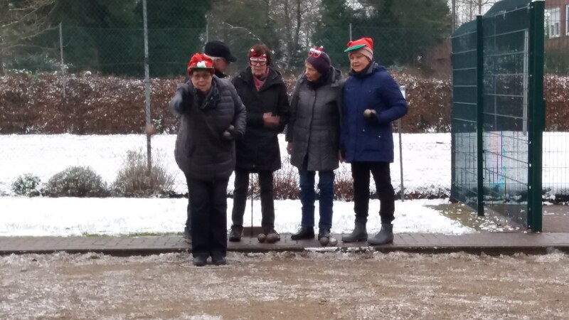 Heike war zum ersten Mal mit ihren Gymnatikgruppen bei uns, um das Jahr in weihnachtlicher Atmosphäre ausklingen zu lassen. Beim Boulen hatten dann auch alle viel Spaß. Zwischendurch gab es einen oder ...... Glühwein (e). Im Anschluss saß man bei netten Gesprächen im warmen Vereinshaus bei Bratwurst ..........