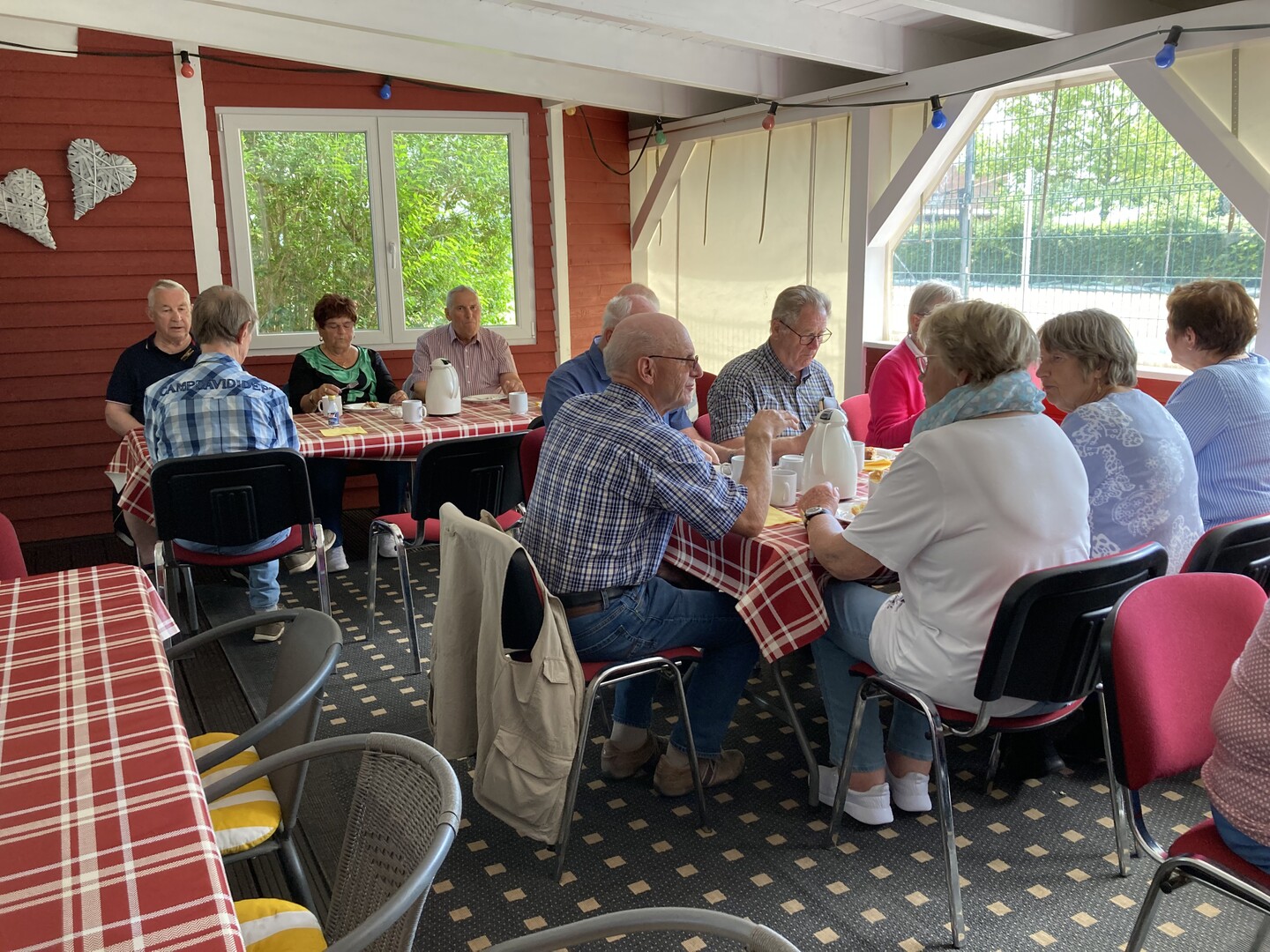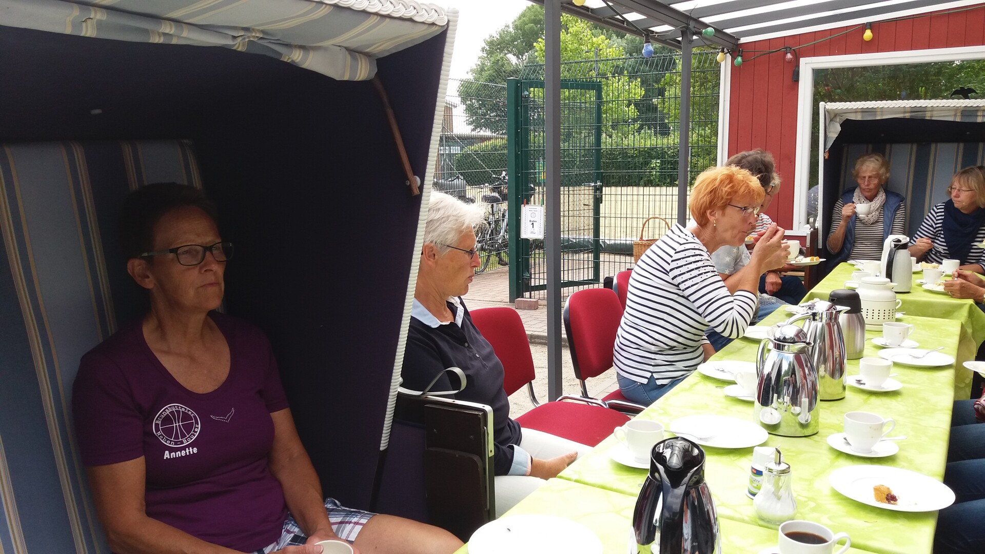 Die Neufelder Gymnastikfrauen mit "Anhang" verbringen im Juni 2018 einen gemütlichen Nachmittag auf der Anlage des Fördervereins.